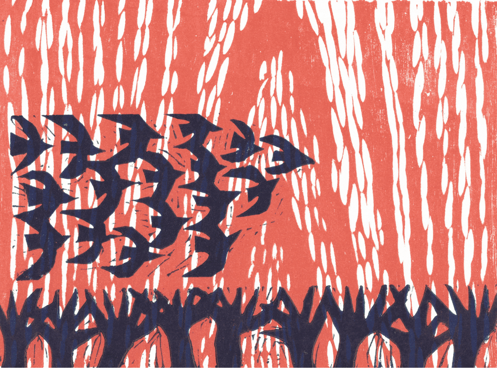 “Dawn Flight” • 2023 • Woodcut Print • 4" x 5 1/2" • Trevor Grabill, Flat Mtn Press